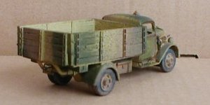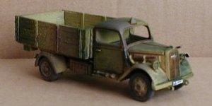 | Long Review: | I purchased three of these via an alternative trader, as my German troops required transport urgently. The most logical choice was the Opel Blitz, which only eBob produced at the time. The kit consists of the chassis, a 6-part cab, a 6-part loadbed, seperate axles, springs and wheels. The joints all fall on natural panel lines, so there is no problem with having to sand seams in unusual places. It is slightly more fiddly than the resin kits, but makes a much more detailed model at the end of the day. I will say that, while it is fairly easy to assemble (except for the rather complicated load-bed to chassis bit), it is somewhat more complex than the standard kits associated with wargaming. It is also a fairly heavy kit once assembled... I did enjoy the assembly on mine, and have two more lined up for conversion work. |