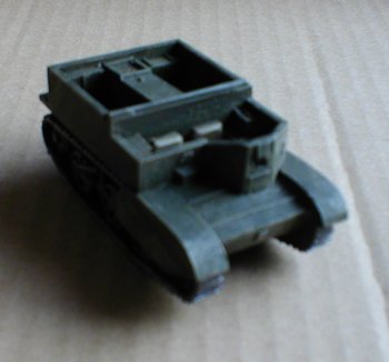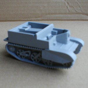 | Long Review: | The Universal Carrier which I received is cast in three parts (the hull and the two sets of tracks - a left and a right). The tracks fit on the body reasonably positively due to some small lugs on the body. There was a minimal amount of excess material (the underside of the body required a little cleaning- it's the moulding plug), and also a small number of bubbles in the resin, which are easily filled. The model captures the look of the carrier rather well, and, although I can't decide whether it is a Mk I or a Mk II (the differences are so slight that it will work as either). |