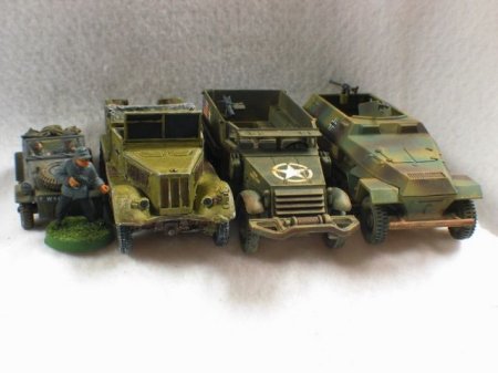 Corgi Kuebelwagen, AFAD SdKfz 11, Verem M3, Solido SdKfz 251.