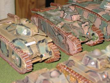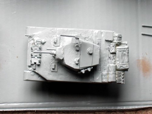 From above. Added to this model are: 1: AA LMG, redone ammo box on turret, redone turret hatches, new gun barrel for the 37mm and both coax and hull LMG, spare track on hull front and turret side, rear deck raised and grill added to the deck under the turret. The angled armor on the hull sides and on the turret sides (frontal armor) was made that way from the original rounded plate.