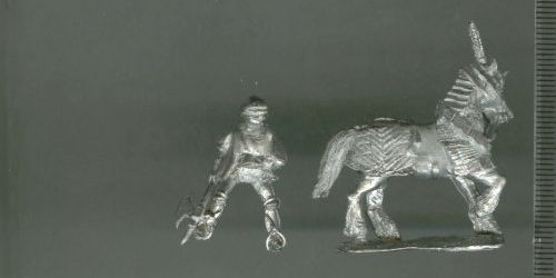 | Long Review: | When Ian asked if I'd like to review a few more of his figures, I jumped at the chance, as my previous experience of Irregular Miniatures ranges are restricted to 15mm and 10mm (obviously not counting the WW1 range elsewhere on this site). This section of the Medievals is one of the newly remodelled ranges, these being somewhat larger than the older ranges apparently. The detail on these figures a lot more compatible with all the other ranges out there. I believe they will match the Parkfield and Old Glory ranges particularly well. The figures received for review are: Two variants of M62-Longbowman firing, both of whom are wearing light clothing and helmets and are depicted having just loosed an arrow. Both have swords as additional weapons, and one has a sheaf of arrows in a belt pouch, while the other has them point-first in the ground at his right foot. The two M63-Longbowman loading or holding weapon figures are both holding their bows in their left hand, and holding a sheaf of arrows in the right. One is wearing a cowl, while the other has an arming cap. The archer with the cowl has a bit of a mishappen face, as the eys, nose and mouth are very close to his chin. The figure, though, is still attractive. M64 Heavy billman charging with bill is also a very useful figure. He wears a sallet and carries a short-handled bill, and has a sword as side-arm. He is, as appears to have been the case for many of these men, unarmoured. M68 Heavy infantry crossbowman firing or loading- is a kneeling crossbowman wearing padded armour/akheton and a helmet, captured as he looses a quarrel over the top of his pavise. Slung over his left shoulder to hang at his right hip is a quiver of quarrels, and a short knofe hangs at his left hip. M72(a) Foot offer with standard is leaning on his pike/flag-pole, hanging onto it with his right hand, while pointing at the front with his left. He wears a breast plate with short chainmail sleeves and sallet and has a sword for defence. He is possibly a touch thinner than I'd like, but a most impressive leader. M56 15th Century mounted knight with mace or axe and M56(a) 15th Century mounted knight with mace or axe, dismounted are a mounted/dismounted pairing. The mounted version sits on a Gothic-style barded horse, which for a change actually looks like a warhorse capable of carrying an armoured knight as well as the barding it had. The rider is wearing plate legs and arms, and a loose surcoat over these, disguising the body armour. His helmet is a serviceable visored sallet. He is armed with an axe and has a sword at his left hip. |