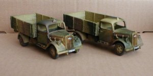 | Long Review: | I purchased three of these via an alternative trader, as my German troops required transport urgently. The most logical choice was the Opel Blitz, which only eBob produced at the time. The kit consists of the chassis, a 6-part cab, a 6-part loadbed, seperate axles, springs and wheels. The joints all fall on natural panel lines, so there is no problem with having to sand seams in unusual places. It is slightly more fiddly than the resin kits, but makes a much more detailed model at the end of the day. I will say that, while it is fairly easy to assemble (except for the rather complicated load-bed to chassis bit), it is somewhat more complex than the standard kits associated with wargaming. It is also a fairly heavy kit once assembled... I did enjoy the assembly on mine, and have two more lined up for conversion work. |