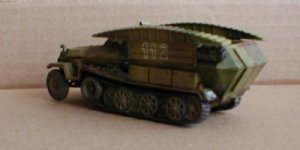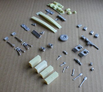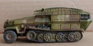 | Long Review: | I own two SdKfz 251/1 A/B, which was one of the first kits produced by NZWM. When I saw the new C and D versions Tony mentioned on his group, I figured that, as my German collection has grown so considerably, they need more transport. What better than more halftracks? I went ahead and ordered some... To say that I was surprised by the parcel is an understatement. The new '251s are stunning. Gone is the one- or two-part casting. These are full-on kits consisting of two resin hull parts, and an additional 28 or 29 detailing parts in both resin and metal. These are actually almost scale model kits rather than wargame vehicles. The individual parts are incredibly well-cast and detailed. The resin parts are almost scale-thickness (an achievement in itself), and the fit, even straight out of the box, before any cleaning on my part, is excellent. Included is a photo-copied two-page set of instructions on assembling the kits. I must say that I'm still impressed with the kits. When I first began assembling them, I was a little intimidated- the number of parts is quite daunting. However, by assembling the bits an area at a time, the kits almost fell together. The front wheel assembly is a little fiddly, and one of my track-units was severly warped (easily fixed with some hot water, though). The surface detail (and that in the crew-compartment, for that matter), is well-executed, and really looks convincing once painted. I'm really happy with these kits and wish I'd gotten a few more when I had the chance. |