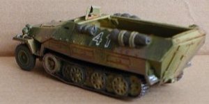 | Long Review: | I own two SdKfz 251/1 A/B, which was one of the first kits produced by NZWM. When I saw the new C and D versions Tony mentioned on his group, I figured that, as my German collection has grown so considerably, they need more transport. What better than more halftracks? I went ahead and ordered some... To say that I was surprised by the parcel is an understatement. The new '251s are stunning. Gone is the one- or two-part casting. These are full-on kits consisting of two resin hull parts, and an additional 28 or 29 detailing parts in both resin and metal. These are actually almost scale model kits rather than wargame vehicles. The individual parts are incredibly well-cast and detailed. The resin parts are almost scale-thickness (an achievement in itself), and the fit, even straight out of the box, before any cleaning on my part, is excellent. Included is a photo-copied two-page set of instructions on assembling the kits. I must say that I'm still impressed with the kits. When I first began assembling them, I was a little intimidated- the number of parts is quite daunting. However, by assembling the bits an area at a time, the kits almost fell together. The front wheel assembly is a little fiddly, and one of my track-units was severly warped (easily fixed with some hot water, though). The surface detail (and that in the crew-compartment, for that matter), is well-executed, and really looks convincing once painted. I'm really happy with these kits and wish I'd gotten a few more when I had the chance. |