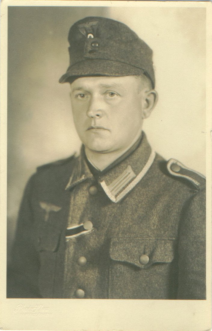 Grandad on 28 8 1944, as Unteroffizier, wearing the ribbon for the Ostfront medal and the KVK II with swords.
