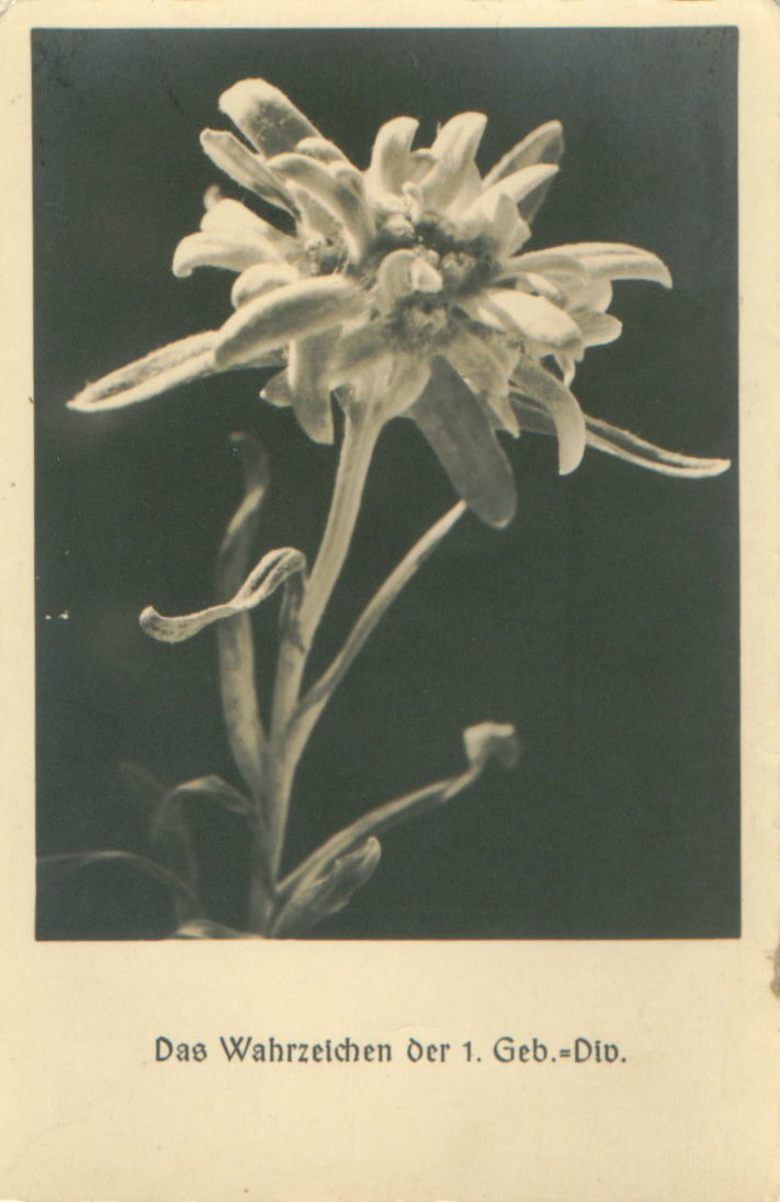 The 1.Gebirgsjäger-Division was formed on April 9th, 1938 in Garmisch Partenkirchen from the original Gebirgs-Brigade, the sole mountain unit of the German military since 1935 when the Wehrmacht was formed. The Divisions origins stemmed from the traditions of the German, Italian and Austrian Mountain Units of WWI. After WWI ended, because of their record in battle, the Weimar Republic kept a small cadre of mountain troops to use as the nucleus for a future mountain force. In 1935 this cadre of men helped form the basis of the Gebirgs-Brigade, and by April of 1938, it was raised to a Divisional unit, the 1.Gebirgs-Division.